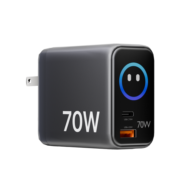 | Short Product SnippetA compact 70W USB-C PD charger with integrated 80cm cable and multiple outputs — ideal for powering laptops, tablets and phones at trade shows, exhibition booths and retail displays. |
